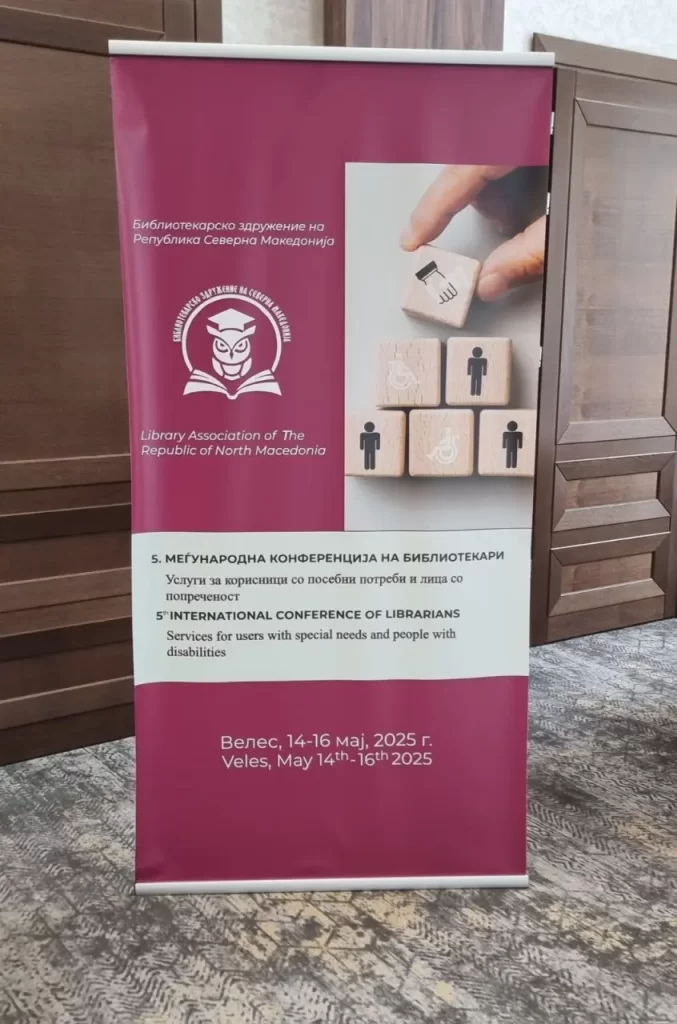 Со голема чест и задоволство споделуваме дека во Велес, од 14 до 16 мај, се одржа 5. Меѓународна конференција на библиотекари, која се фокусираше на развојот на инклузивни библиотечни услуги за лица со попреченост и посебни потреби. Конференцијата е проект од национален интерес во културата за 2025 година.